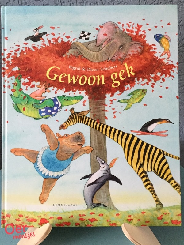 Gewoon gek. Van Ingrid en Dieter Schubert. Op iedere spread van dit boek vind je een tegenstelling; zwaar en licht, nat en droog, klein en groot, enzovoorts. Uitgebeeld door dieren. Wat een feest om te bekijken!