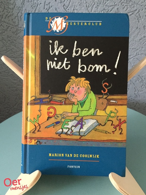 Een oudje, uit mijn eigen boekenkast: ‘ik ben niet bom’. Wat eigenlijk ‘ik ben niet dom’ moet zijn, maar daar zit nou net de kern van het verhaal. Het boek gaat over een jongen die dyslexie heeft maar wel een belangrijke aanwijzing voor een inbraak heeft gezien.