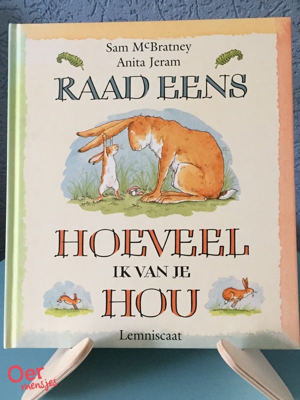 De eerste titel waar ik dan aan denk? Raad eens hoeveel ik van je hou. Naast het gewone voorleesexemplaar hebben we ook een versie die wordt voorgelezen. Door mijn moeder. Zo leuk!
