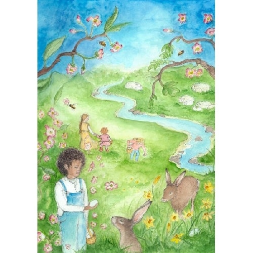 Ansichtkaart Lentefeest. Deze mooi kaart is getekend door Margo (eentje van Margo). Gedrukt op ansichtkaartformaat, a6. De kaarten van Margo staan zo mooi op je seizoenstafel.