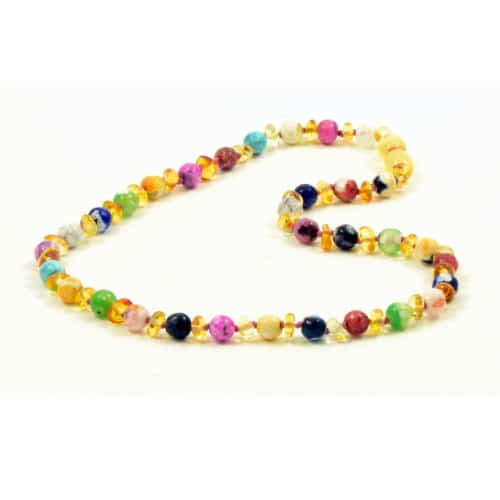 Barnsteenketting Lemon, kleurrijk agaat