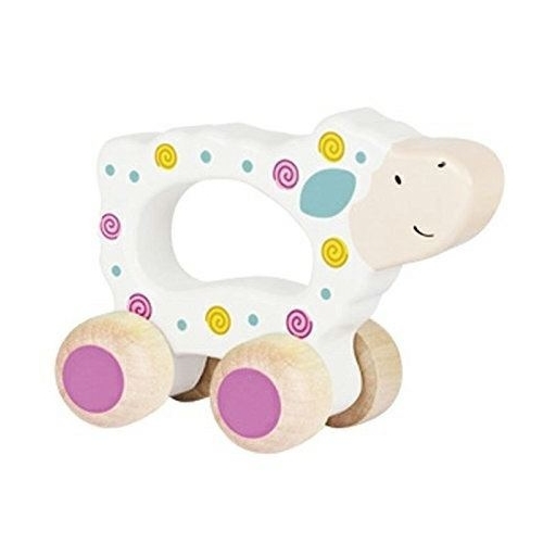 Goki houten schaap op wielen. Makkelijk vast te pakken door de kleinste kinderhandjes. Afmeting: 13 x 6 x 8 cm.