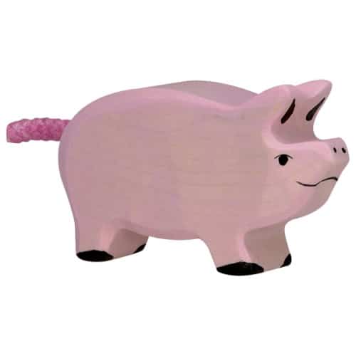 Holztiger big, net zo prachtig als alle houten boerderijdieren. Heel schattig (met een echt klein staartje), heel klein en heel roze. Er is ook een rennede variant en er zijn biggetjes met vlekjes. Natuurlijk zijn er ook varkens, zowel de mama- als de papa variant zodat je een hele varkenfamilie kunt verzamelen.