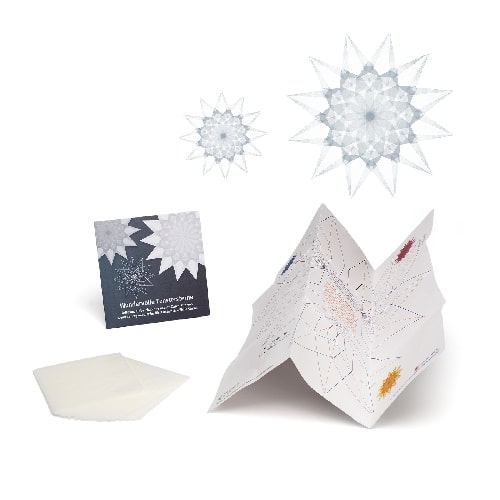 Deze sterrenvouwpakketjes zijn er in drie verschillende kleuren (regenboog, wit en rood/oranje/geel)